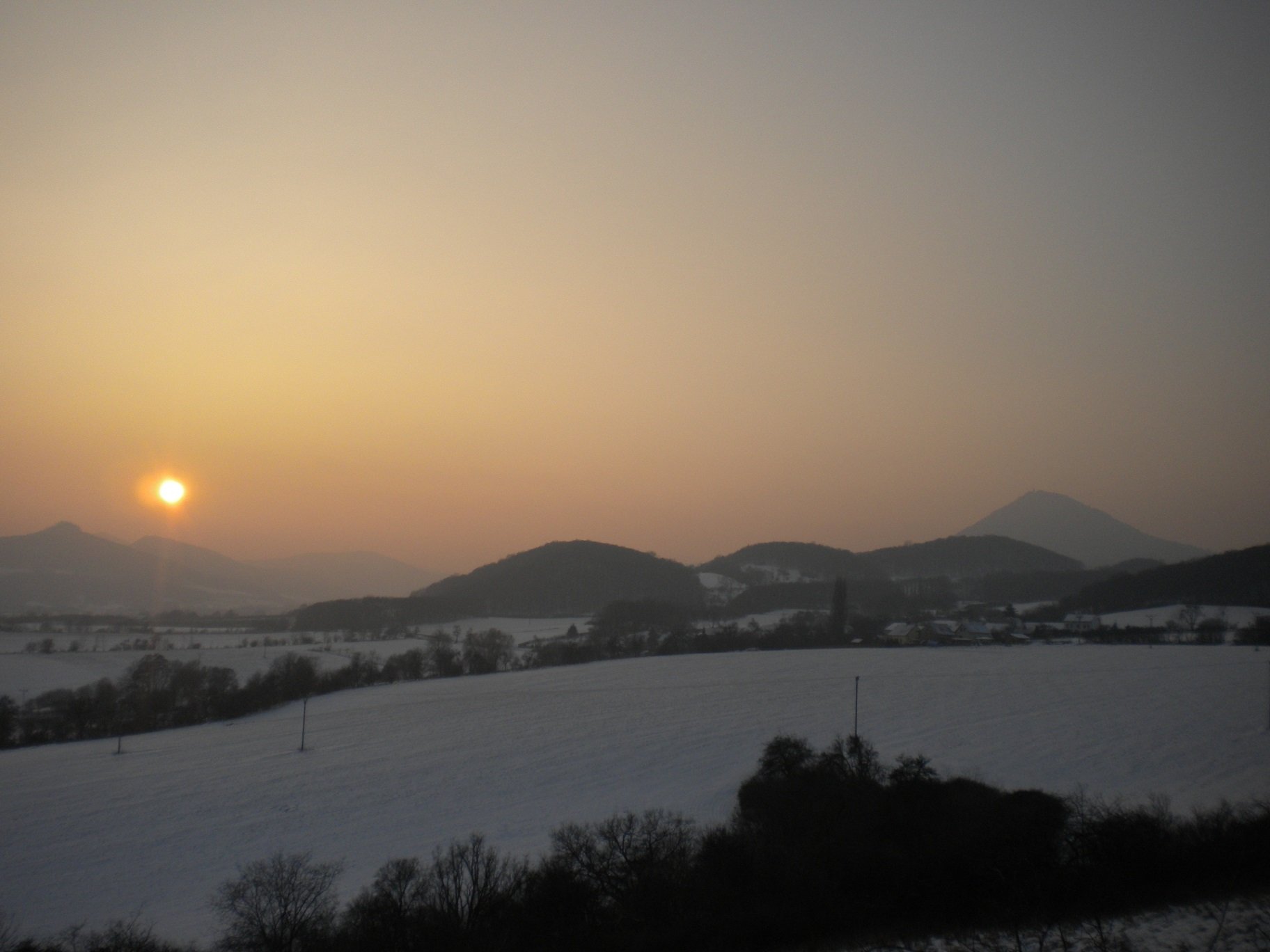 Západ slunce nad Ostrým a Lipskou horou.  autor: rychlobezka