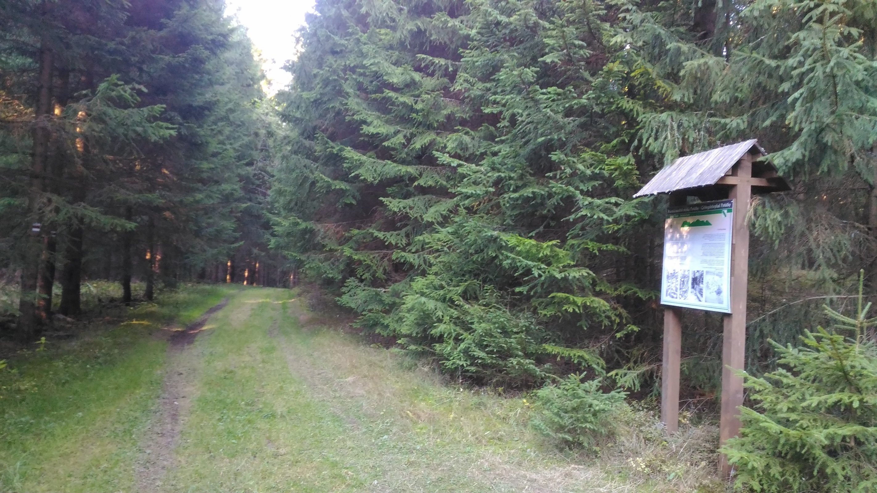 Kousek za vrcholem je veliká propadlina starého dolu a odbočka na skalní vyhlídku na Rudenské hraně.