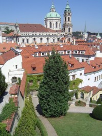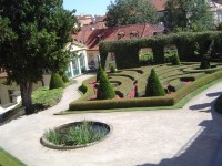 Vrtbovská zahrada byla vybudována v letech 1715 - 1720 u paláce Jana Josefa hraběte z Vrtby, nejvyššího purkrabího Pražského Hradu. Autorem náročného projektu je František Maxmilián Kaňka, který u nás vytvořil celou řadu barokních staveb. V dolní části zahrady vás zaujme především nádherná sala terrena, spojující palác se zahradou. Je zdobena vzácnými freskami od českého malíře Václava Vavřince Reinera a také sochami Bakchuse a Ceres od Matyáše Bernarda Brauna. Na protější straně je rozsáhlá voliéra s ptactvem. Postranní schodiště vedou na střední terasu s malým bazénkem a vodotryskem. Pod zeleným loubím jsou skryty lavičky, které i v největším horku skýtají příjemný stín. Dva malé pavilónky po stranách vznikly až později, při klasicistních úpravách v polovině 19. století. V jednom z nich byl v 19. století ateliér českého malíře Mikoláše Alše.Směrem k vrcholu zahrady se vypíná vysoká opěrná zeď, tvarovaná z typicky barokních oblých segmentů s kuželkovou balustrádou a dvoukřídlým schodištěm, která je ozdobena plejádou soch antických božstev a barokními vázami (1720 - 1725). Z vyhlídky v nejvyšším bodě Vrtbovské zahrady, vybudované pravděpodobně v 19. století, se vám otevře nádherný pohled na Pražský Hrad a Malou Stranu s dominantním chrámem sv. Mikuláše.