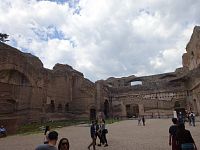Caracallovy lázně. Při pohledu na to, co tady zůstalo z původní stavby, si zkoušíme představit podobu tehdejších lázní. Trochu nám v tom pomáhají 3D brýle, které se zapůjčují u vstupu. Jisté je, že mnohé dnešní aquaparky se Caracallovým lázním nevyrovnají.