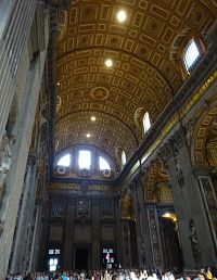 Bazilika rozkládající se na ploše přes 15 tisíc metrů čtverečných má tvar řeckého kříže s ústřední velkou kupolí a čtyřmi menšími kupolemi nad postranními kaplemi. Po vstupu do hlavní lodě nás čeká příjemné překvapení, jelikož množství návštěvníků se na té ohromné ploše kostela rozptýlilo. Údajně by se dovnitř mělo vejít až 60 tisíc lidí. A tak se můžeme celkem v klidu rozhlížet (srovnávám-li to s Vatikánskými muzei). Postupně se procházíme a informace o tom, co vidíme, čerpáme z průvodce i z popisků na místě.