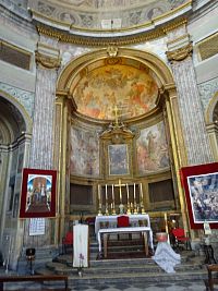 Dvoupatrová fasáda je na římské poměry celkem jednoduchá. Ukrývá centrální kupolovitou stavbu s umělecky zpracovanými pilastry a klenbami v bočních kaplích, zdobených náboženskými motivy. Nachází se zde také hrob kardinála Guglielma Sirleta.
