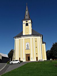 Chrám je dlouhý 35 m, vysoký 20 a jeho šíře činí 15 metrů. Interiér lodi s valenou klenbou osvětluje 10 oken, presbytář dvě okna s barevnými vitrážemi sv.Jana Sarkandera a sv.Terezie. Součástí kněžiště je napravo Boží hrob a nalevo sakristie, nad nimiž se nacházejí oratoře sloužící v minulosti všechovickému panstvu. Nad hlavním vstupem vystupuje z hmoty kostela hranolová věž zvonice, která spolu s jehlancovitou střechou s makovicí a křížem dosahuje výše 36 m. Ve věži jsou zavěšeny dva větší zvony a umíráček. Na čelní stěně věže je nad vchodem umístěna nika s polychromovaným reliéfem Panny Marie Hostýnské, k níž mají místní věřící zvláště vřelý vztah. Venkovní fasáda chrámu je členěna lizénami v podobě rámů. Střecha kostela má střechu sedlovou a je zakončena polygonální valbou s věžičkou sanktusníku.