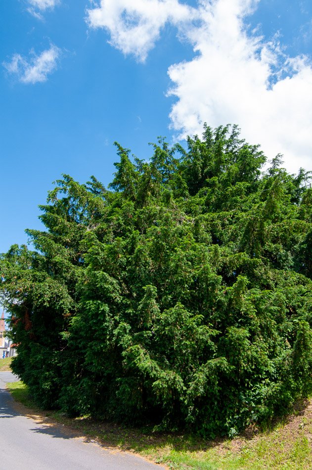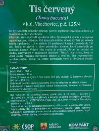 Tis červený (Taxus baccata L.) ve Všechovicích. O stáří tohoto stromu můžeme vézt spory, můžeme s nimi nesouhlasit, ale asi je to jediné co se s tím dá dělat. Tedy, udává se stáří 900–1000 let, ale i skromnějších 400 let, což je taky celkem dost. Dnes je strom (spíše rozložitý keř) na volném prostranství, ale dříve býval součástí zahrady nebo parku u místního zámku, spíše tvrze. Protože sídlo bylo jednu dobu v držení známého válečníka, Jana Jiskry z Brandýsa, někdy je strom pojmenován po něm. Pokud budeme uvažovat o kterémkoliv časovém údaji, byl by strom zasazen do kategorie veterán, klidně by to to ještě mohl být i fénix. Nosná část tisu se totiž už dávno rozpadala, ale strom má tu vlastnost, že se dobře ujmou i vedlejší výhony (větve).