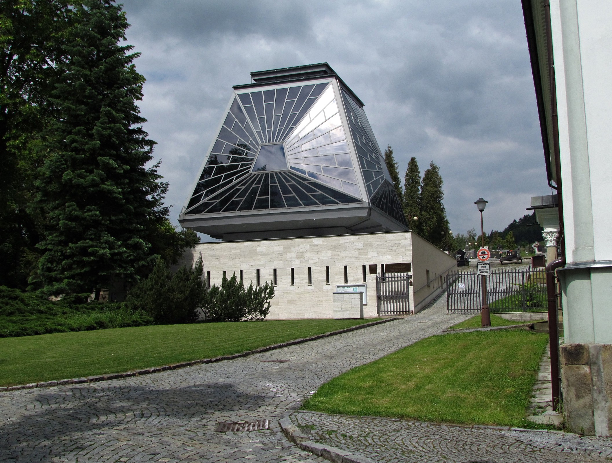 Nejenom budovy, které se po dlouhá staletí stavěly k bydlení těch majetnějších, mohou být krásné. Kritéria estetična a krásy může splnit i stavení, které je synonymem bolesti a zmaru - smuteční síň, kde se naposledy rozloučíme s těmi našimi nejbližšími. K tomu, aby se tak dělo co nejdůstojněji, přispěli také na Vsetíně v 70.letech minulého století skutečně skvostnou a nápaditou stavbou. A nedivte se, že něco takového vzniklo v dobách totality - i soudruzi si ve skrytu duše uvědomovali, že jsme si před smrtí všichni rovni, jedno jaké politické straně či náboženství je kdokoliv z nás nakloněn... Vsetínská městská Smuteční síň prošla nedávno velikou rekonstrukcí (kromě špatného technického stavu se musela vyřešit její špatná tepelná izolace, neboť v létě teplota interiéru dosahovala tropických hodnot) a najdete ji na začátku velkého městského hřbitova. Nejblíže je to k ní od dvojice evangelických kostelů, vypínajících se nad Palackého ulicí.