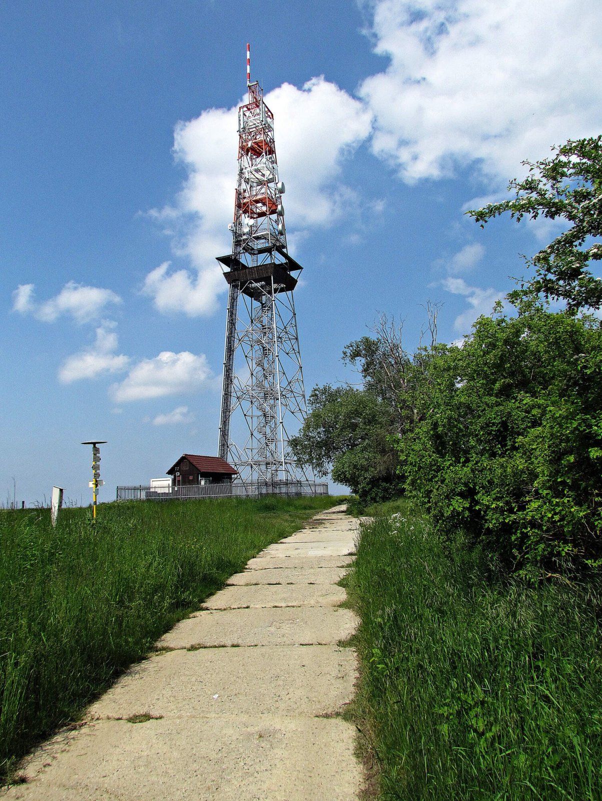 Tato rozhledna je vetknuta do ocelové konstrukce vysílače mobilního operátora. Před začátkem stavebních prací v září 2002 jeho zbudování uherskohradištní radní podmínili tím, že se na věži bude nacházet i veřejnosti volně přístupná vyhlídková plošina. Což se stalo… a my se můžeme po zdolání 125 stupňů vřetenového schodiště za příznivého počasí z výše 24 m potěšit dalekými výhledy do kraje.