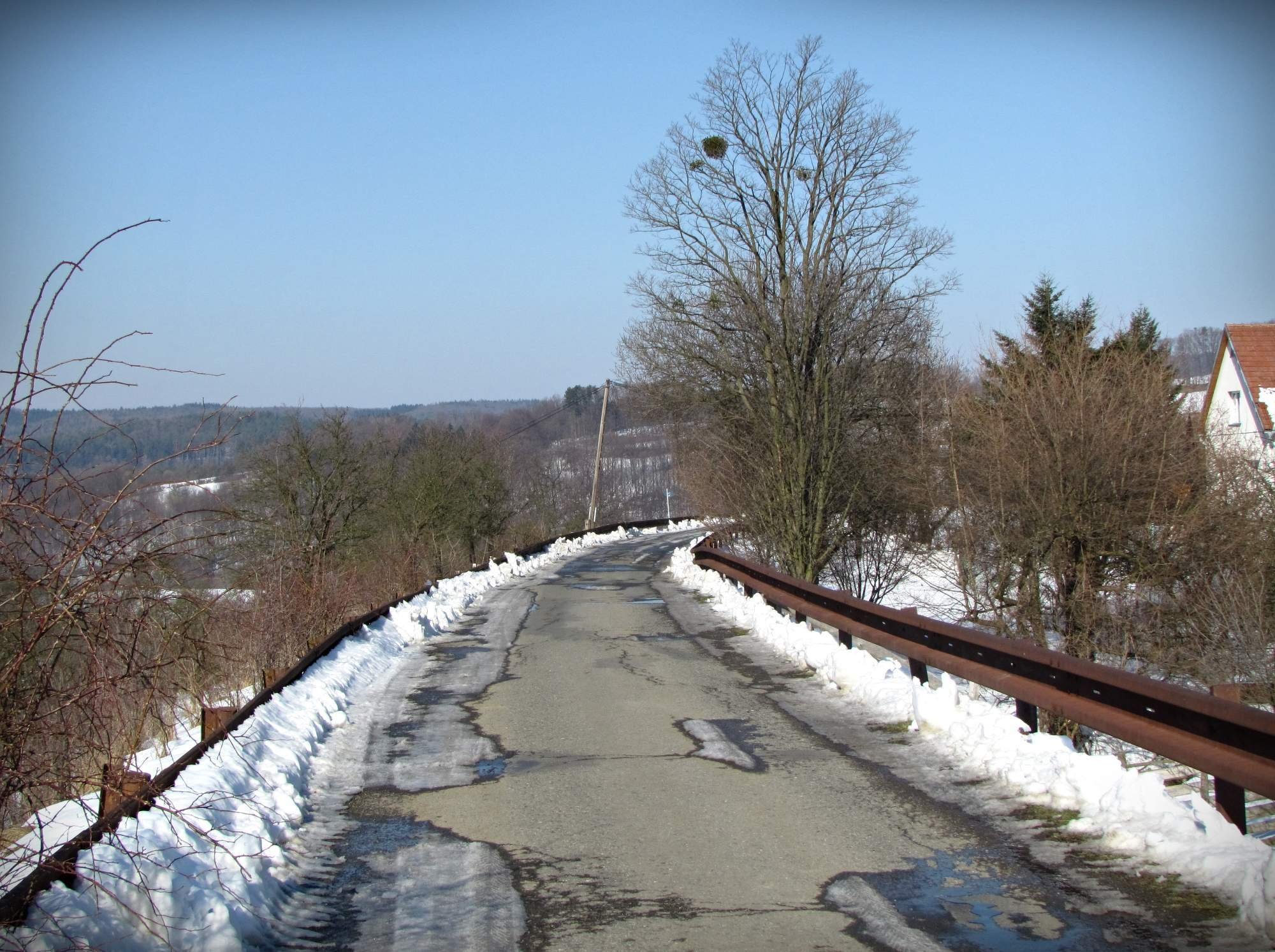 Obávám se, že se naše generace nejdůležitějšího valašského drážního propojení nejspíš už nedožije, ale zase nám nic nebrání v tom, abychom se po dosud zbudovaném tělese Baťovy trati alespoň neprošli. Z Vizovic až do údolí Senice po něm vede zelená a modrá cyklostezka a stejnobarevná trasa turistická v úseku Ublo – Valašská Polanka. I my se po ní (jen v okolí Ubla) v mrazivém únoru 2015 prošli... a v mé Fotogalerii si na obrázcích můžete prohlédnout, co krásných valašských kotárů je k vidění jen v okolí téhle menší dědinky.