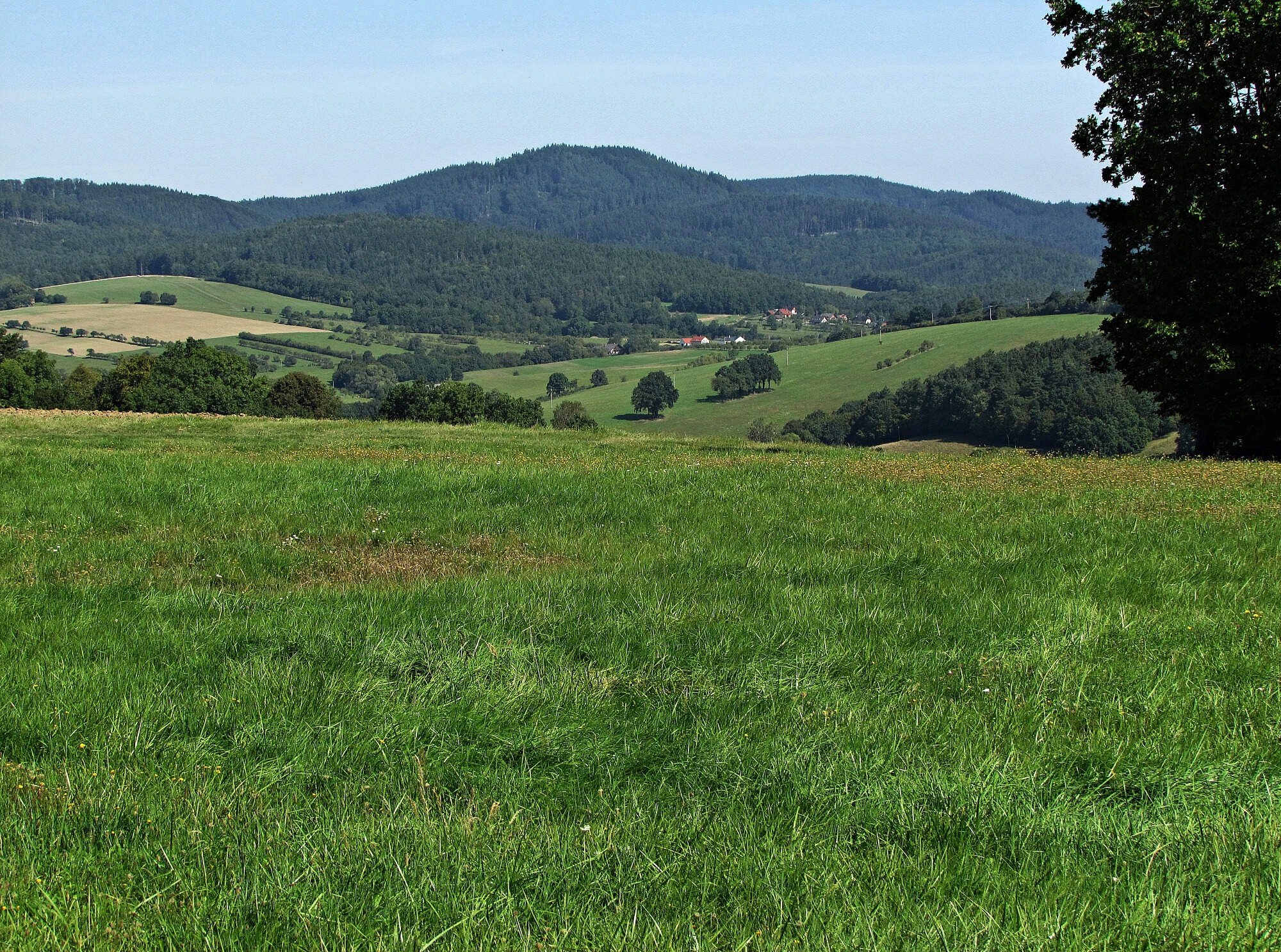 Zhruba 600 m od sjezdovky silnička míjí Újezdské paseky a poté hřebenem klesá – s pěknými detailními pohledy na Újezd a okolí – do zástavby pod centrem obce, k němuž je třeba krátce vystoupat.