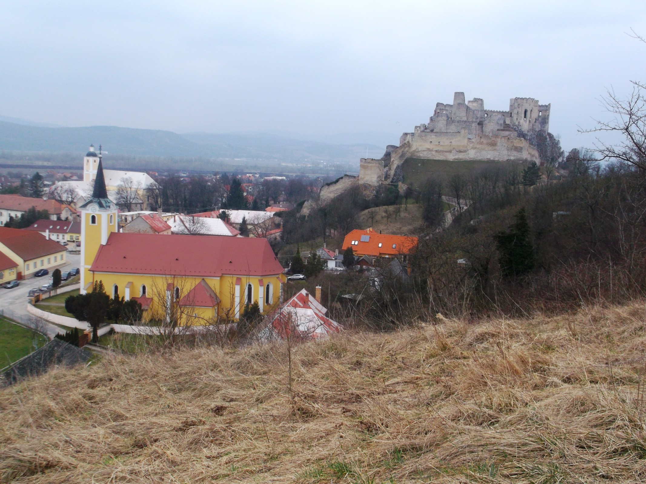 Niekoľkokrát, keď sme cestovali automobilom po diaľnici, pri pohľade na kopec južne od hradu ma upútali dve stavby, považoval so ich za možno kaplnky nejakej krížovej cesty. Už vtedy som sa rozhodol, že pri návšteve Beckova sa tam pozrieme, lebo to miesto by mohlo ponúknuť aj pekný výhľad na hrad a obec. Ta chvíľa teda nastala a od hradu sme sa vydali do sedielka, ktoré v minulosti vzniklo počas odtrhnutiu a posunu pohoria Karpát. Je tu i infopanel zastavenia číslo 4. Náučného chodníka Sychrov. Po zdolaní ešte malého prevýšenia sa teda dostávame k jednej podľa mňa považovanej kaplnke, ktorá je ale v skutočnosti zvonicou. Zvonica je i ďalšia podobná stavba umiestnená o niečo nižšie. K obom týmto zvoniciam je drôtmi privedená elektrická energia, spúšťanie zvonov je pravdepodobne automatizované. Kaplnky teda správny odhad nebol, ale výhľad, i keď počasie nebolo najideálnejšie je obtiaľto naozaj pekný. Od zvoníc sme sa vrátili späť do sedielka pri hrade a odtiaľ tou istou cestou, ktorá vedie k hradu dole do obce na prechádzku, lebo na hrad sme sa vybrali najskôr.