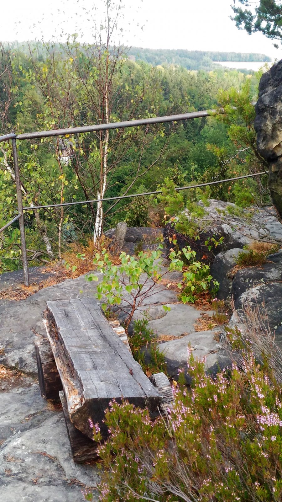 Další ze skalních vyhlídek nad Švýcarským mlýnem v údolí Bielatalu. Vyhlídka byla vybudována v 19. století při velkém rozvoji zdejších klimatických lázní.