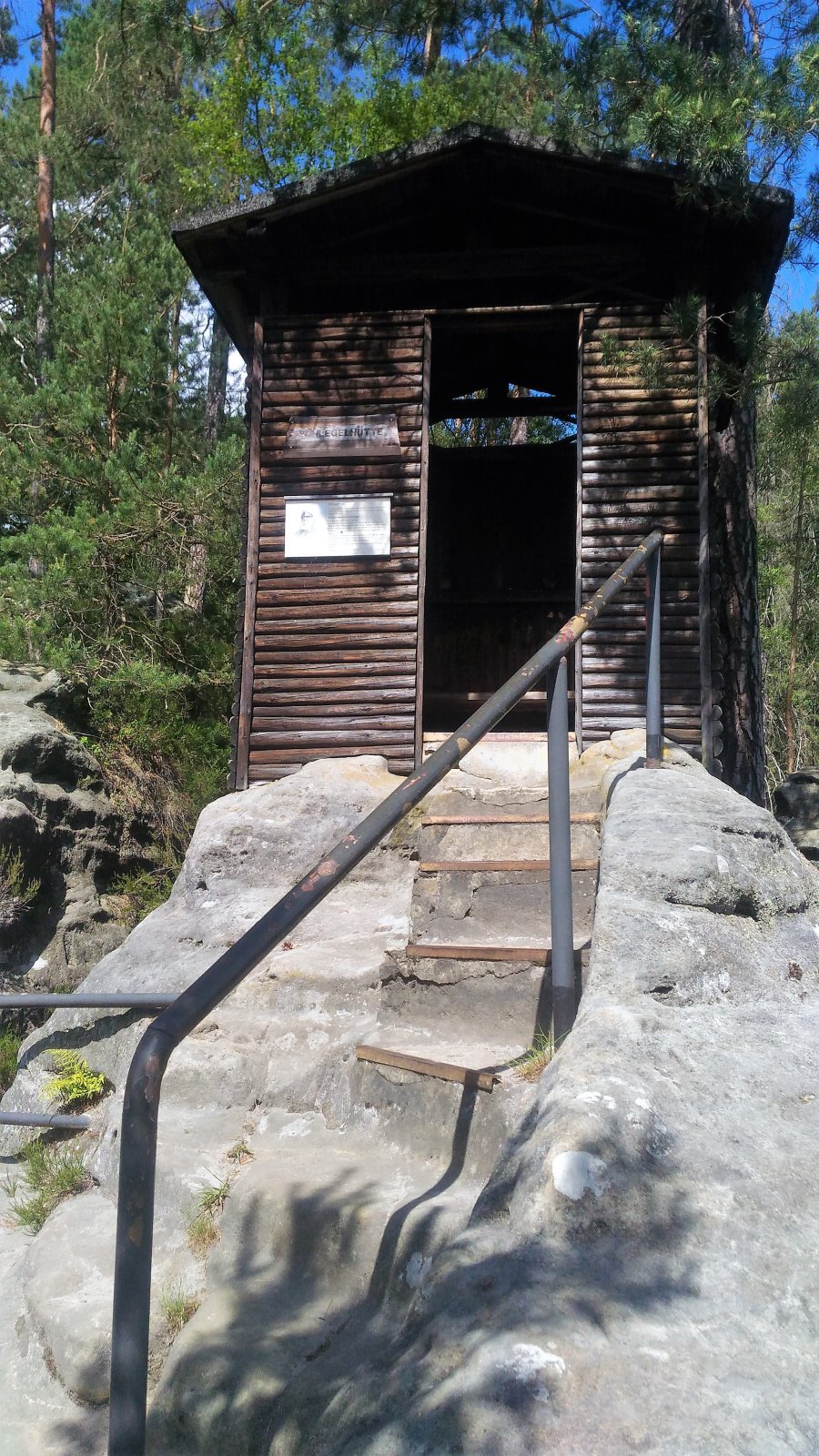 Na vrcholu stojí dřevěný přístřešek Schlegehutte a jsou zde zabezpečená vyhlídková místa s částečným výhledem do soutěsky Křinice.