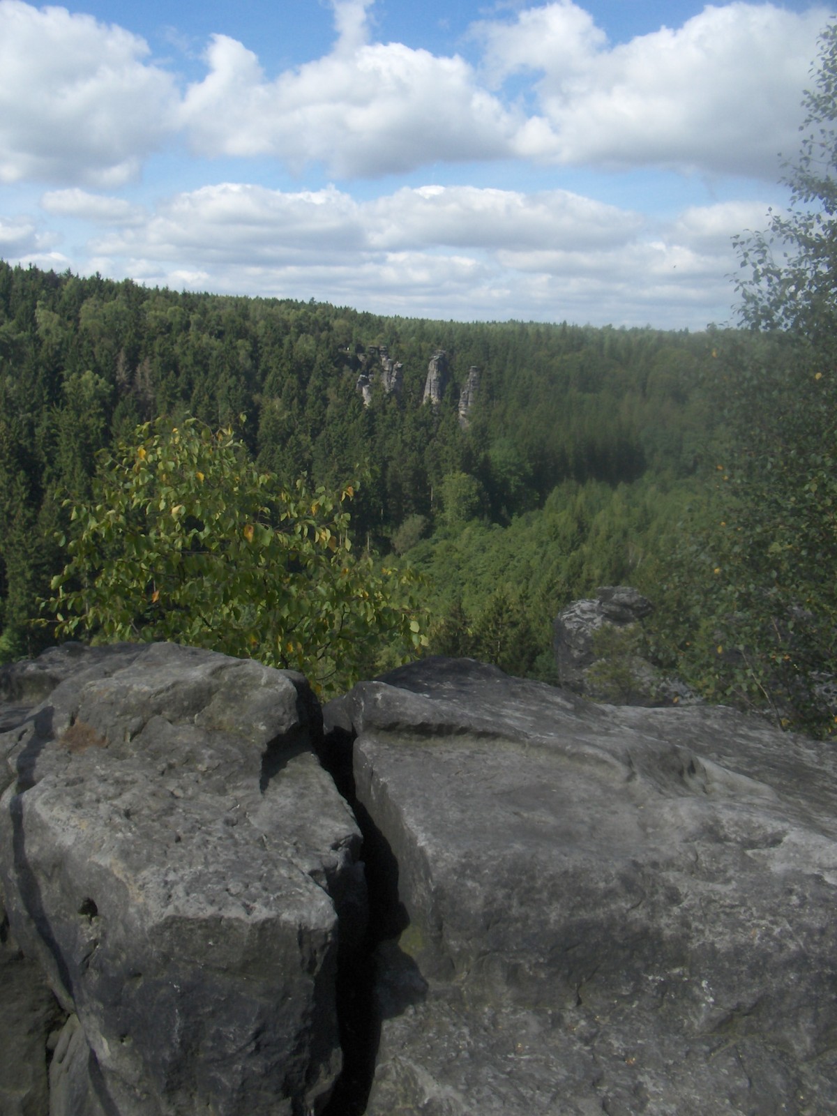Pískovcové skály na západním okraji Saského Švýcarska, poblíž české hranice, vzdušnou čarou 2 km severovýchodně od Petrovic.