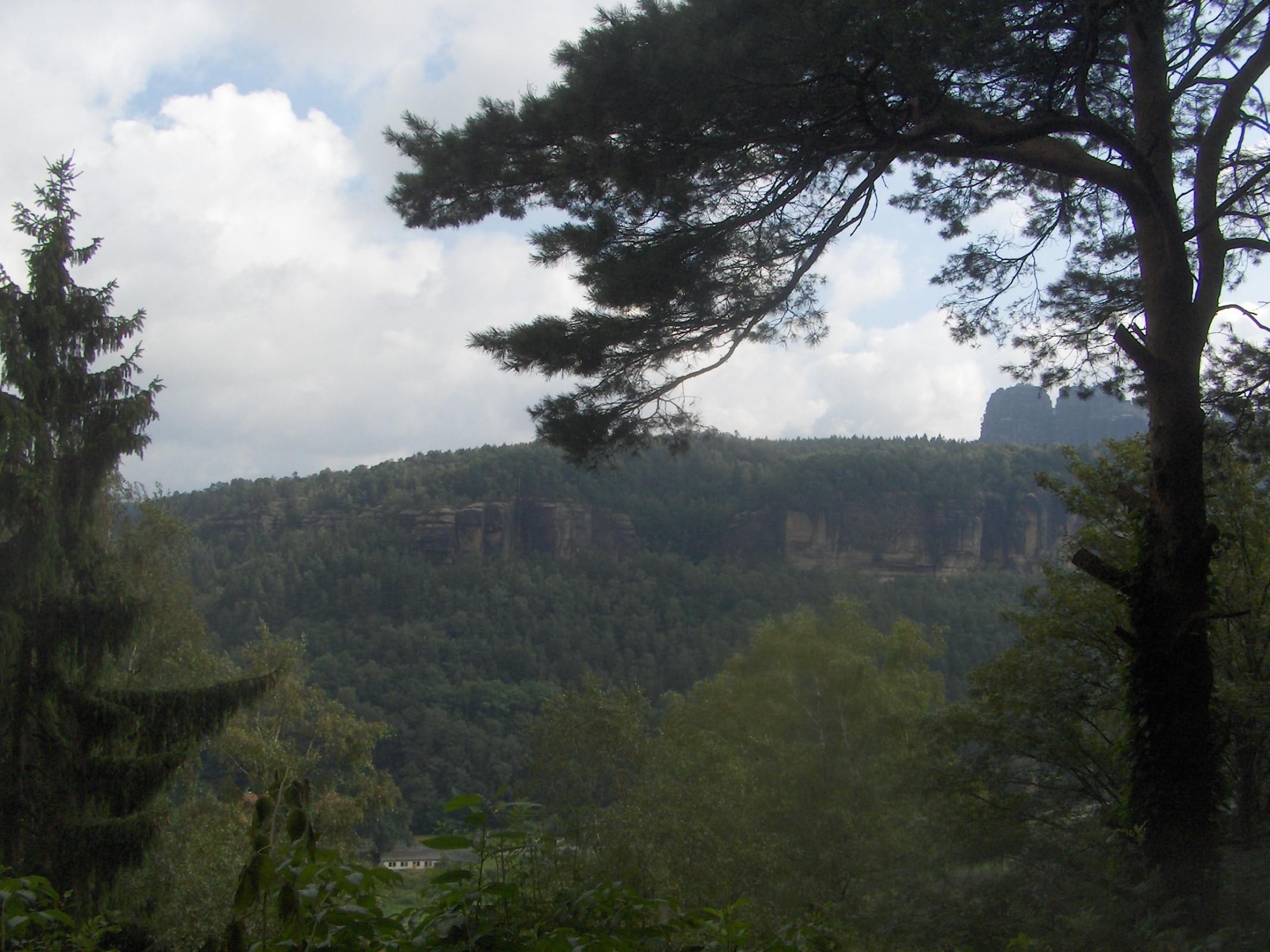 Výhled je omezen vzrostlými stromy, přesto se nabízí neobvyklý výhled na hřeben Schrammsteine.