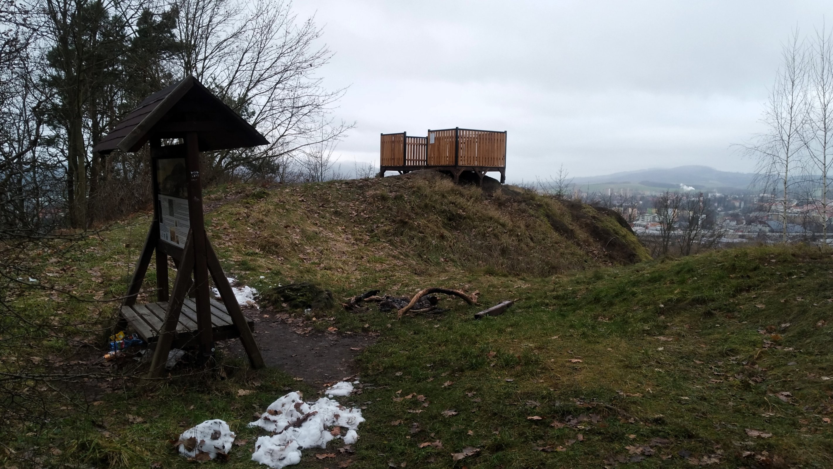Z dřevěné plošiny je výhled na Českou Lípu, východní část Českého středohoří a Lužické hory s Klíčem a Luží.
