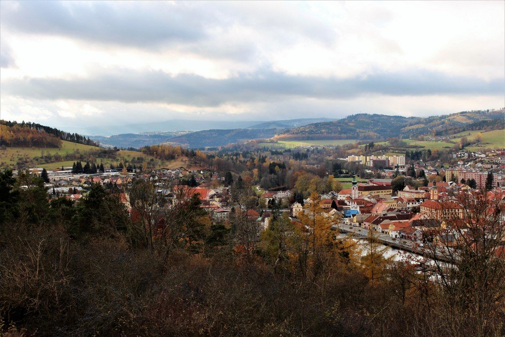 Vrch Stráž ( 546 m.n.m.) s kaplí Anděla Strážce je jedním z dosti navštěvovaných míst města Sušice. Vypíná se nad pravým břehem řeky Otavy v jižní části města. Kaple Anděla Strážce je hezká barokní stavba, která je občas i otevřena. V listopadu se musíme spokojit pohledem zvenčí. Kolem kaple jsou terasy, ze kterých je velmi hezký pohled na město a jeho okolí. Při dobré viditelnosti to je i něco málo ze Šumavy. Kaple se dá obejít a pohledy do okolí se proměňují jak na filmovém pásku. Na západě vidíme postupně celé město se Svatoborem ( 845 m.n.m.) v pozadí. Novější část města je na SV a JZ. Na severu je vidět část Budětické a část Svatoborské vrchoviny. Na opačné straně je Žižkův vrch ( 591 m.n.m.) a Šibenik ( 619 m.n.m.). Směrem na východ je vrch Kalovy ( 727 m.n.m.) a jeho okolí. Poslední tři jmenované vrchy patří do Svatoborské vrchoviny. Ke kapli lze dojet autem ze Chmelenské ulice a pěšky stezkou od řeky Otavy po zelené turistické značce z náměstí.. Kolem stezky jsou zastavení křížové cesty v moderním pojetí. Dalším přístupem je schodiště, ke kterému z nábřeží vede Palackého a následně Alšova ulice.