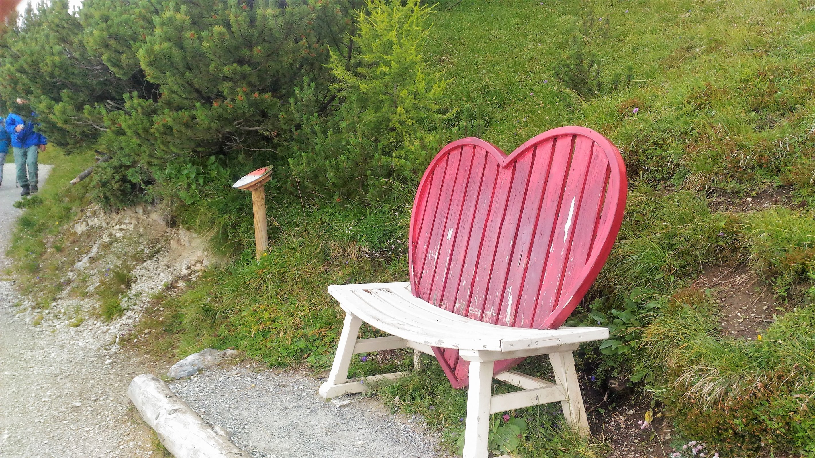 Podél cesty jsou odpočinková místa vyrobená stubaiskými umělci.