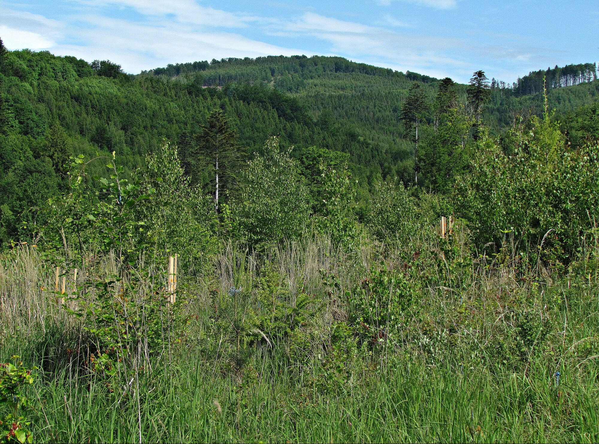 Naše žlutá od křižovatky pokračuje mírným stoupáním po silničce vlevo a brzy nabídne nad odlesněným svahem velmi hezké vyhledy na vedlejší hřeben Vsetínských vrchů, oddělující od toho hlavního dolinu Malé Bystřice a údolí s přehradní nádrží Bystřička. Nejvýraznější vyvýšeninou na něm je 692 vysoké témě Podhůry korunované stožárem vysílače. Po ujítí asi 600 m od křižovatky s odpočinkovým altánem žlutá trasa odbočí vpravo do zalesněného svahu a už bez výhledů stoupá v délce 450 metrů do sedla Hodorf.