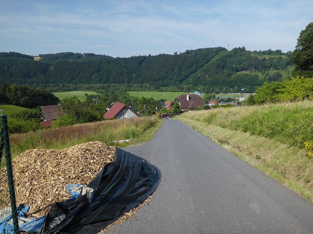 Právě proto začnu tou nejobtížnější, kterou jsem vymyslel a zařadila se k těm, které se vyjedou jednou jedenkrát. Problémem zde je především obtížný a ne příliš bezpečný sjezd. Dokonce bych řekl, že je hodně nebezpečný a upřimně řečeno podruhé bych už jej opakovat nechtěl. Na druhou stranu se může zařadit k výškovým rekordům i rekordům v obtížnosti a za odměnu také bude krásný výhled na okolní kopce i do údolí. Cenou za to je, že člověku zima určitě nebude a také, že si ověří přilnavost podrážek na místy vymláceném asfaltu s jemným štěrkem. Postup v neověřených botách silně nedoporučuji. Právě na té podrážce, její přilnavosti a pevnosti v rukou, které musí být suché aby neklouzaly, což po solidní zátěži při výstupu (výjezdu) nemusí být až tak snadné, velice záleží. Stoupání nahoru se mnohdy podobá horskému výstupu strmým svahem tedy v našem případě asi deset, dvacet, maximálně třicet metrů a alespoň minuta na vydýchání. Kopec je opravdovou výzvou. A ač velmi nerad říkám, že něco nejde (nejde teprve tehdy když se člověk sám vzdá), tak si myslím, že pro samotného vozíčkáře není kopec zvládnutelný. Rozhodně ne na normálním vozíku.