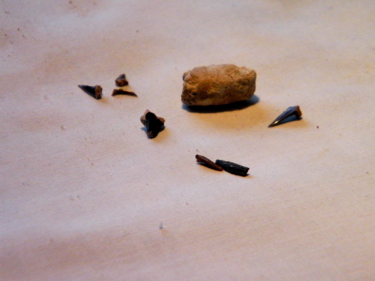 Dnes přírodní památka Žraločí zuby. Já svých pár kousků mám z doby, kdy lokalita nebyla zákonem chráněná, ale byla přísně utajovaná a vědělo o ní jen pár lidí (každý měl jen těch pár kousků). Teď je to v mapách a označené cedulí, pochybuji, že tam ještě byť jen zoubek zbyl. Už více než dvacet let jsem se tam podívat nebyl. A je to vlastně na opačné straně kopce, než se Dříň nalézá. Jo, a ten větší Kamínek má taky odborný název. Je to koprolit. Zkamenělé, v tomto případě rybí, hovínko.