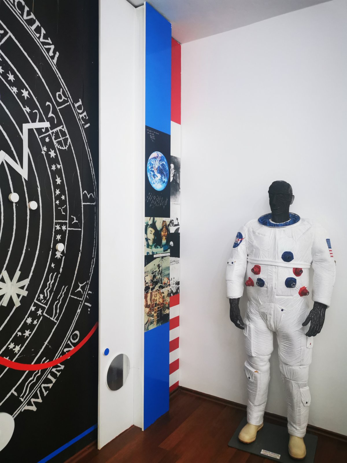 Panel s fotografiami malého Eugena, jeho prastarými rodičmi ako aj s otcom či fotografia astronauta v čase mladosti sú doplnené dobovými fotkami z čias začiatku 20. storočia, kedy starí rodičia amerického kozmonauta so slovenskými a českými koreňmi, odchádzali z chudobných Kysúc do Ameriky za prácou.