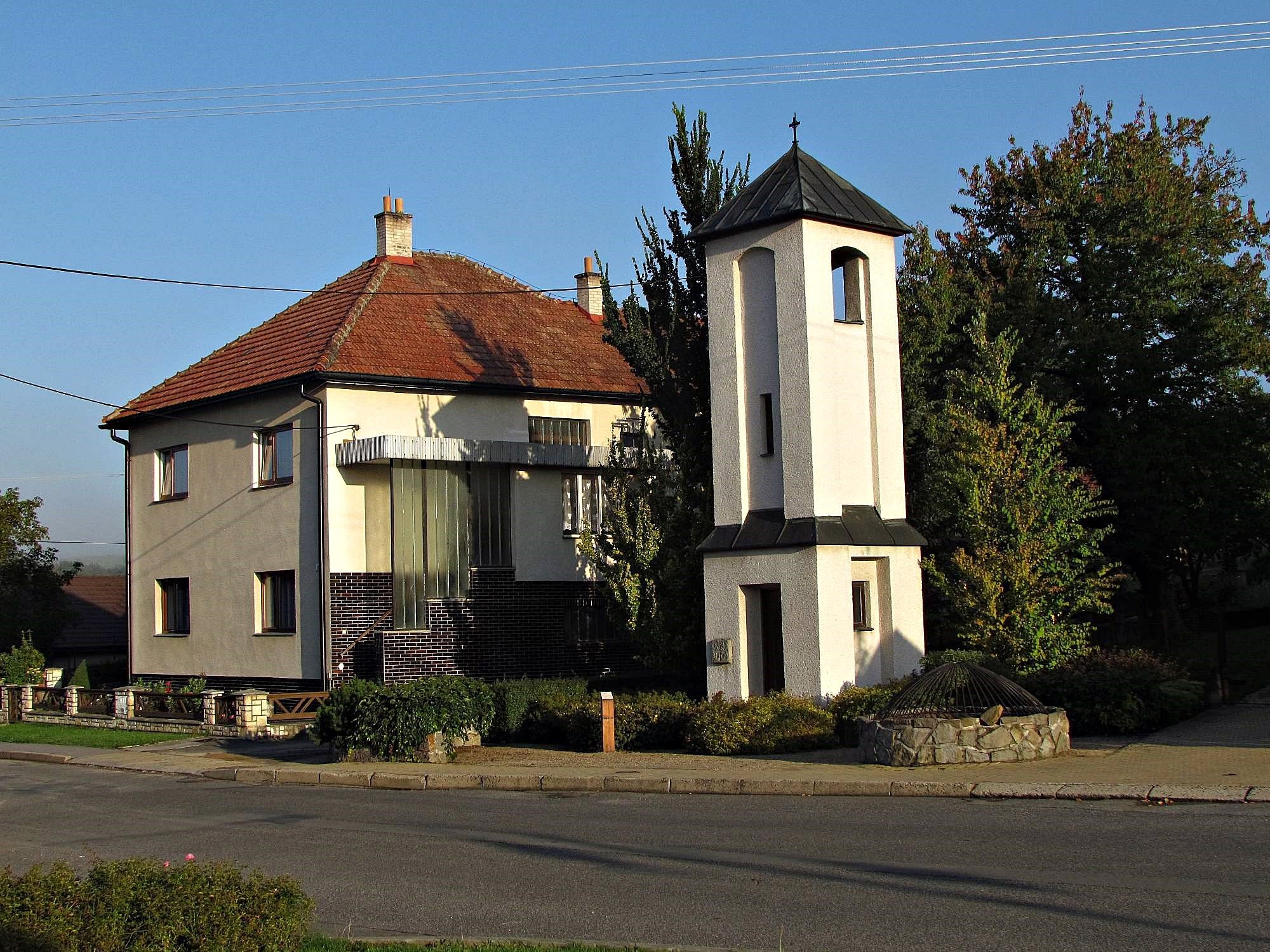 Věžovitá hranolová zvonice stojí u silnice mezi obecním úřadem a zastávkou busu ve střední části obce. Ještě za bývalého režimu si ji přáli zbudovat sami občané. S tehdejším MNV stavbu domluvil farář z Újezda – Jaroslav Studený. Materiál zaplatilo MNV, veškeré práce provedli místní dobrovolníci a to zcela zdarma. Stavět se začalo začátkem března 1986 a za pouhé dva týdny bylo vše i s venkovními omítkami hotové. Zvon o hmotnosti 104 kg dodalo družstvo „Portáš“ z Halenkova. Přišel na 7 tisíc Kčs a sbírka na něj proběhla mezi místními obyvateli. Brzy poté ale čekalo zastupitele obce téměř rok trvající popotahování na okresním národním výboru v tehdejším Gottwaldově. Příčinou bylo udání od jednoho „kovaného“ soudruha, jemuž tento polosakrální objekt nejspíš řádně nadzvedl mandle. Kvůli komunistickému práskači dokonce hrozilo odstranění stavby, naštěstí se nakonec vše vyřešilo jen pokutou za nápis na zvonu a z vrcholu zvonice musel být odstraněn křížek.