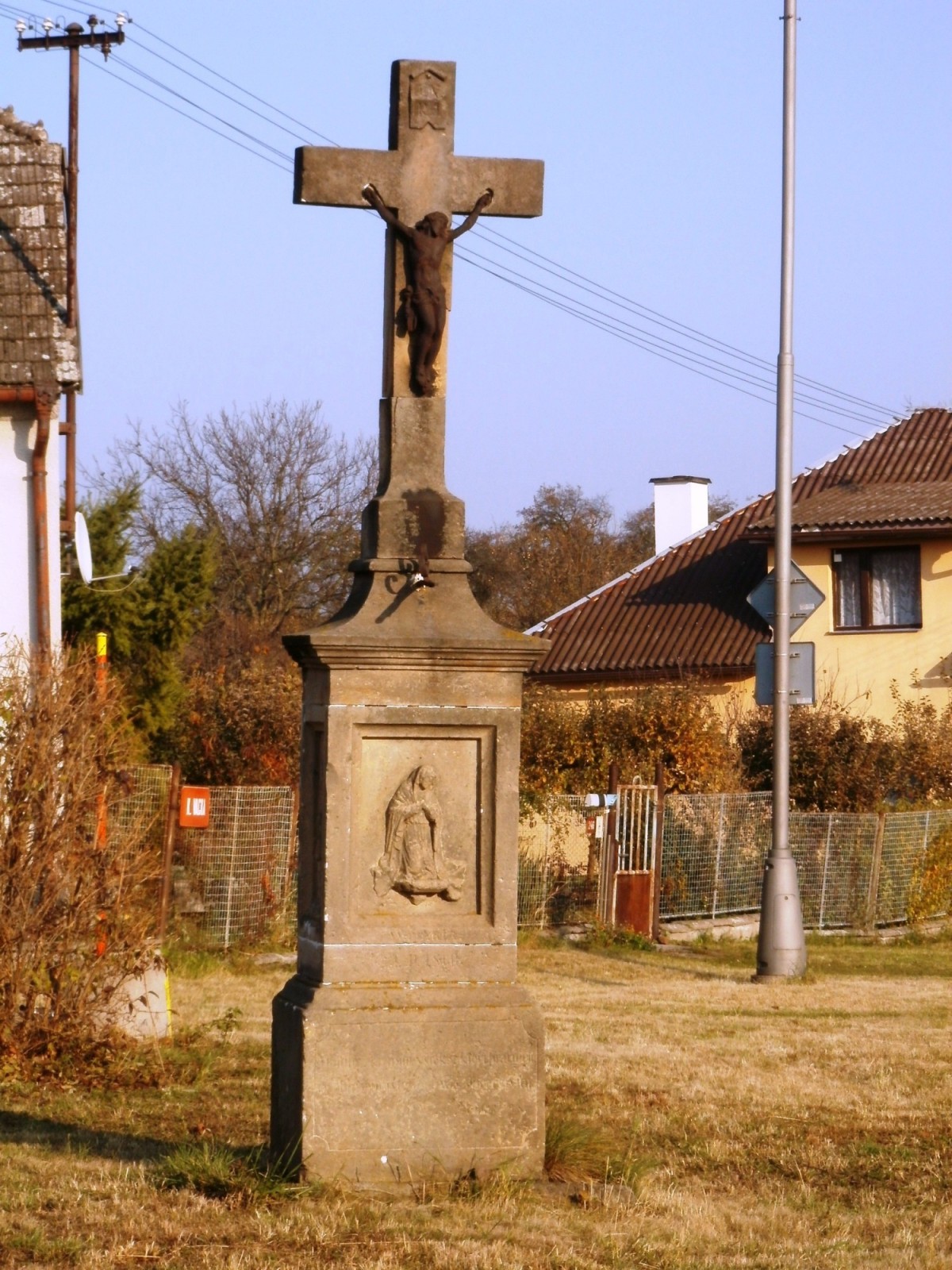 Kamenný kříž z roku 1860 se nachází v prostoru křižovatky cest ve směru na Nevrátice a k rozcestí u Pyrámu. Na soklu kříže jsou reliéfy sv. Panny Marie, sv. Anežky a sv. Josefa.