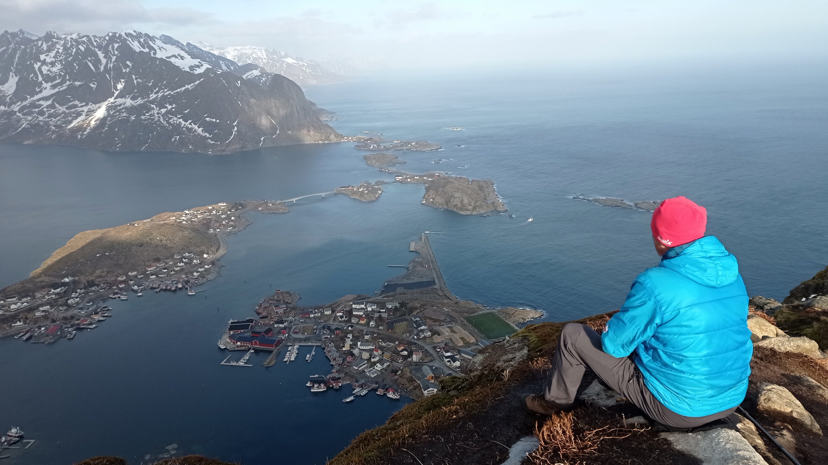 Reine je jedno z nejkrásnějších městeček na Lofotech a nejhezčí pohled na něj je z vyhlídky na Reinebringen. Cesta z parkoviště nad Reinena vrchol není dlouhá, ale převýšení je docela slušné - 666 metrů. navíc po většinu roku je výstupová cesta pod sněhem a nebo zledovatělá. Tak tomu bylo i koncem března, kdy jsme na vyhlídku stoupali my. Ale výhledy na Reine i severní část souostroví Lofoty jsou dechberoucí.