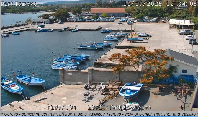 Pohled na přístavní město a letovisko Carevo/Tsarevo z jedné nejkvalitnějších webových kamer na bulharském Černomořském pobřeží. Léto je tady, stačí si koupit letenku, zajistit taxi a ubytování a podívat se tam na vlastní oči – Carevo. Občas se stane, že webkamera je na několik hodin nefunkční – můžete se zatím podívat na carevský přístav prostřednictvím další kamery – Port of Tsarevo.