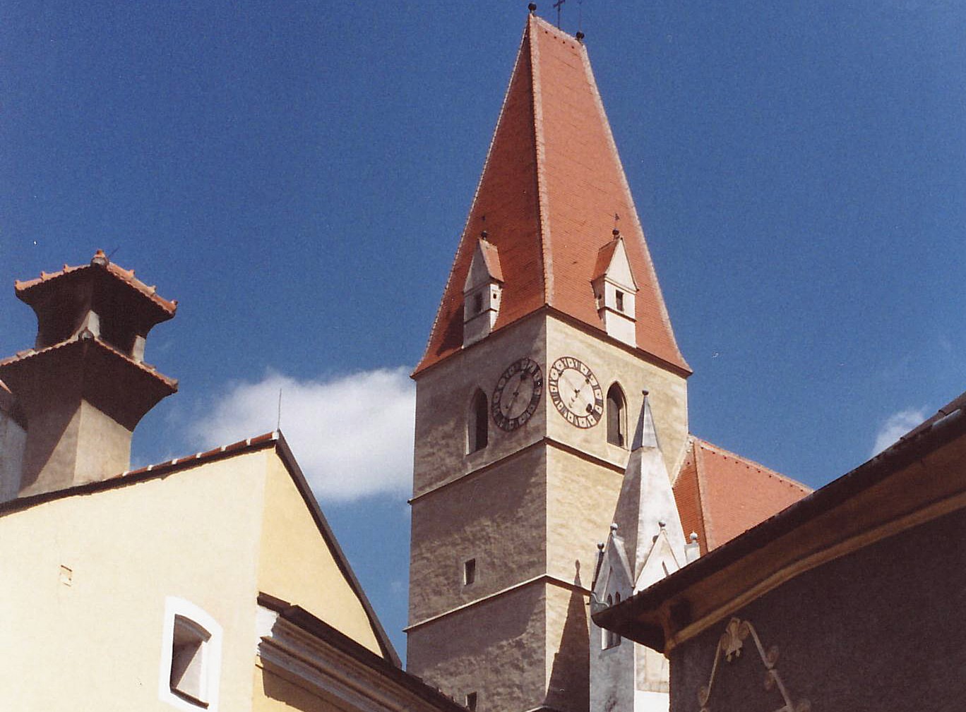 Dolnorakouské historické městečko Weißenkirchen – tedy hezky česky řečeno Bílé kostely – patří mezi ty šťastné, kterým je umožněno umístění v nádherné podunajské oblasti Wachau, jejíchž kvalit si povšimla i „všemocná“ organizace UNESCO. Weißenkirchen leží v okrese Krems a žije zde nějakých čtrnáct stovek obyvatel. Jednoznačnou dominantou historického městečka je impozantní gotický opevněný kostel, pocházející ze 14. století. Současná podoba tohoto svatostánku, stejně jako jeho mohutná věž, však pochází až z I. třetiny 16. století, kdy byl kostel opevněn k ochraně obyvatel proti nájezdům Turků. Interiér zase dovedně spojuje gotickou architekturu s převážně barokním mobiliářem. V samotném historickém městečku, popsaném poprvé snad již roku 830, se ovšem jeho návštěvníci potkají také s paní Renesancí.