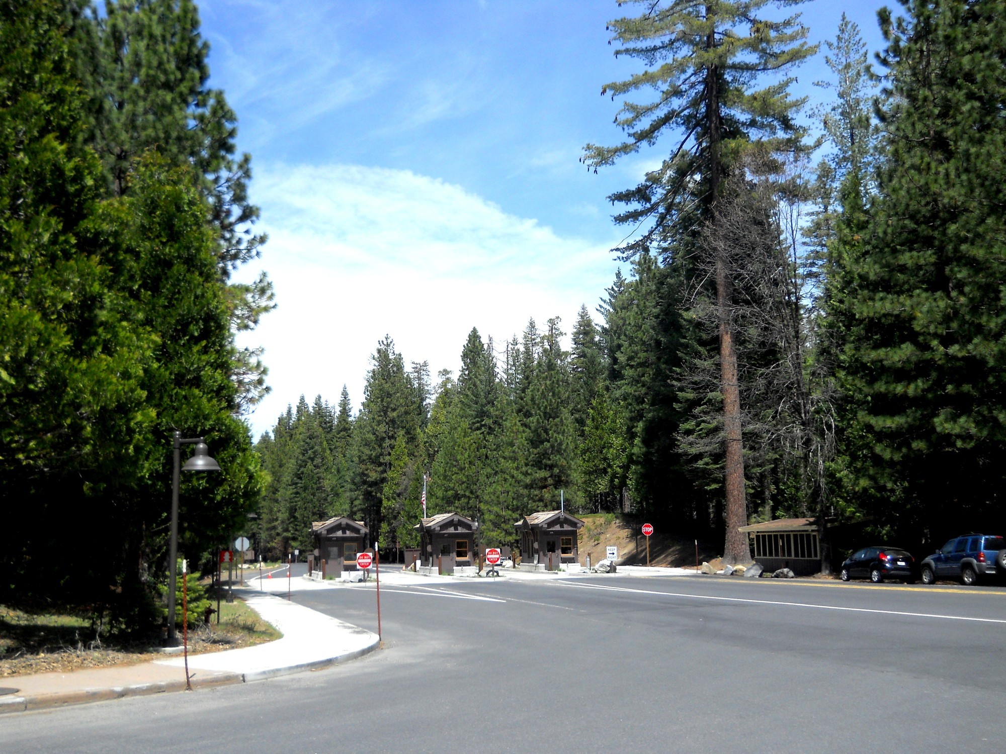 Plánovali jsme, že aspoň jednu až dvě noci tady zůstaneme a vyrazíme se někam podívat. Na konci údolí je několik kempů, tak snad nebude problém. Bohužel byl. Všude byla cedule, že kemp je plný. Zašli jsme se ještě informovat do visitor centra, ale ani tady jsme nebyli úspěšní. Jediné, co nás překvapilo, bylo, že ke komunikaci s cizinci používají translator, takže si vlastně píšeme. Vysvětlil nám, že v některých kempech není vůbec možno spát v autě, nabízel nám ubytování v chatkách – za 75 dolarů na osobu a noc. A doporučil si příště ubytování předem rezervovat. Poděkovali jsme mu za ochotu, ale tuto nabídku jsme nepřijali. Na to, že vlastně ještě nezačala sezona, ani nebyl víkend, tam bylo skutečně hodně rušno.