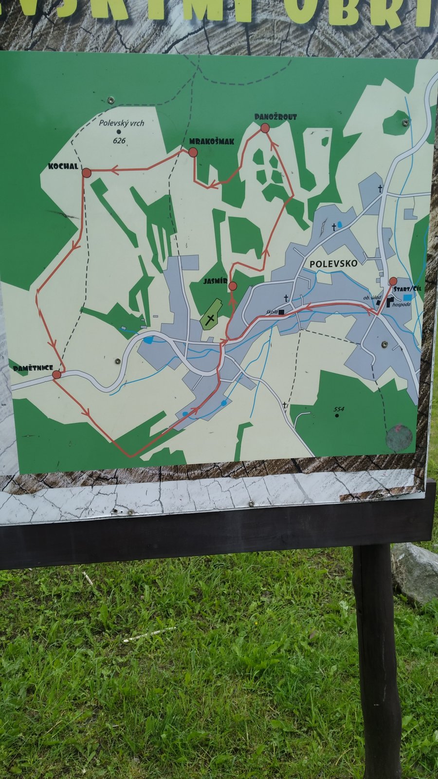 Začátek stezky je na návsi v Polevsku.