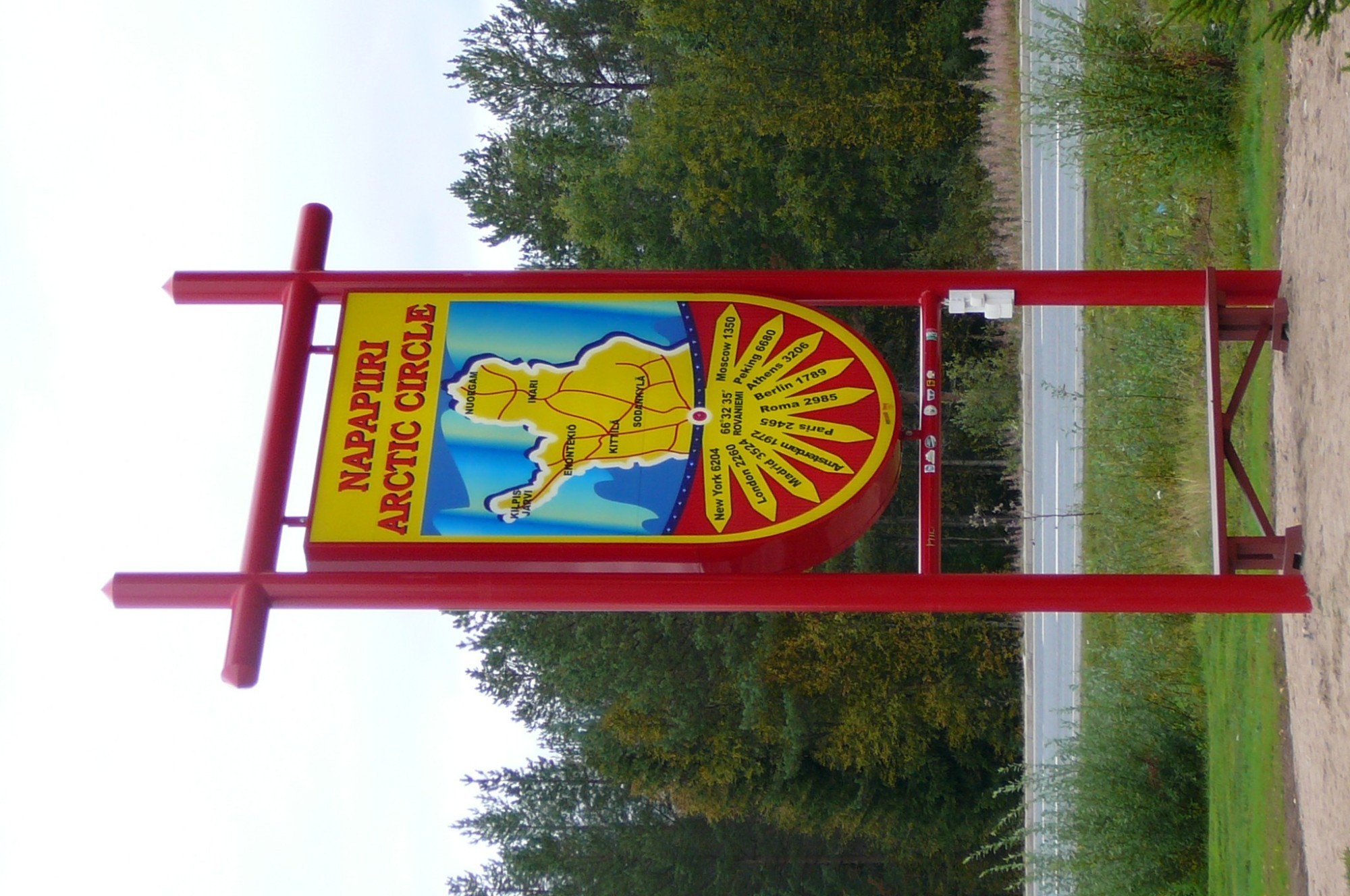 Již u města Rovaniemi nelze přehlédnout směrovky s nápisy "Arctic Circle" (Polární kruh) - ty nás spolehlivě dovedly až do Napapiiri. Zde nás přivítá nepřehlédnutelná brána trojúhelníkového tvaru, za kterou je prostorné parkoviště. Hned u něj narazíte na "Cristmas House" (Vánoční dům, , fin. Joulu Talo, z roku 2005) s vánočními suvenýry a Restaurací. Ten je součástí "Santa Clause Village" (vesnička Santa Clause), v níž naleznete mj. kancelář Santa Clause (Joulupukin Kammari), Dárkový dům Santa Clause (Lahjatalo) či Hlavní poštu Santa Clause (Joulupukin Pääposti). Na poště je nejen možné zakoupit různé suvenýry a pohlednice, ale také speciální poštovní známky, které si je možné nechat orazítkovat "arktickým razítkem".