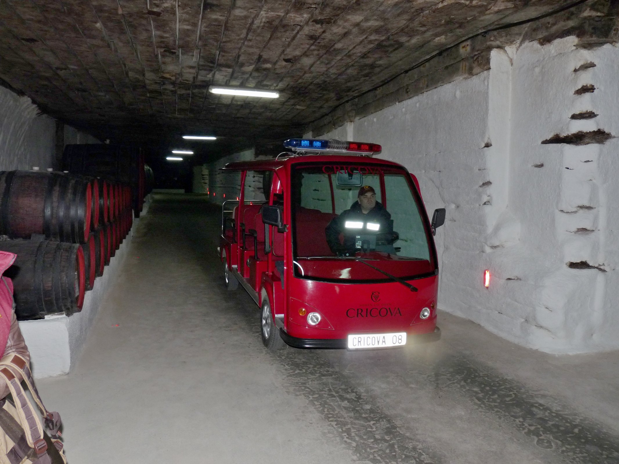 Od brány nás zavezl elektrický vláček do hloubky 60 m, do ulice s prostým názvem Cabernet. Tady se totiž drtivá většina podzemních ulic jmenuje podle vína, ať už odrůdového nebo cuvé, tedy osvědčené směsi vín. Stálá teplota 12 až 14 oC se prakticky nikdy nemění, ale návštěvníku je tu zima. Proto nám hostitelé rozdali teplé pláště, takže je pobyt snesitelný. Ovšem pro zrání vína v dubových sudech je to vynikající klima. Po stranách vidíme řady různých sudů v několika velikostech. V této ulici v nich skladují celkem předvídatelně po dva roky víno odrůdy Cabernet. Drobná poznámka. Cricovský závod vyrábí pouze suchá vína, ať červená či bílá. Před třemi lety tu začali vyrábět i růžové, na které používají pouze z červené odrůdy. Projíždíme další ulicí, tentokrát s názvem Dianiz. Je to název velice úspěšného cuvéé. Obsahuje 50 % vína Cabernet a dalších padesát je z Rulandského modrého. Uskladňují je pouze v dubových sudech. „Máme tu 225 l sudy z francouzského dubu, italské barriky s objemem 350 litrů a největší sudy, kterým říkáme „budany“. Ty obsahují sedm tun vína. Objem ve velkokapacitních tancích raději udáváme váhově“, vysvětluje průvodce. „Máme zde běžně i nerezové cisterny o obsahu 20 tun, ve kterých školíme mladá vína. Každoročně v září a říjnu je automaticky přeléváme pomocí trubek, které vidíte po stěnách, do dubových sudů. Bílá vína udržujeme v sudech od 6 do osmi měsíců. Červená vína skladujeme od jednoho roku do tří let. Naše vinařství zapracovává pouze hrozny, které rostou v Moldávii. Tvrdíme, že naše suchá vína jsou pro lidský organizmus velice zdravá. Obsahují od 4 do 7 gramů hroznového cukru, tedy přírodní glukozy.