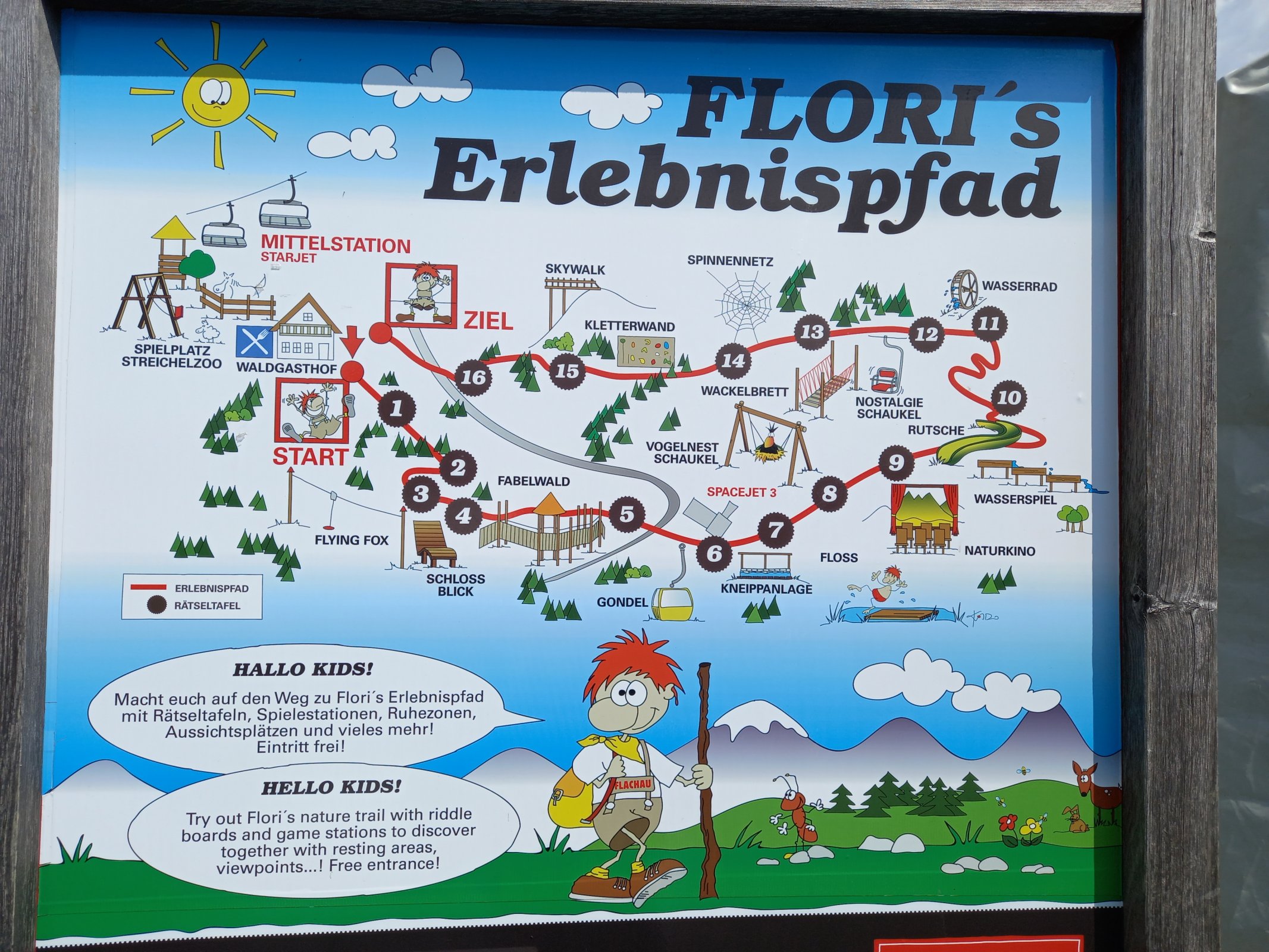 Tato naučná a zábavná stezka se nachází cca 1300m nad mořem nad Flachau zhruba v polovině svahu u přestupní stanice lanovky. Na stezce je několik tabulí se soutěžním otázkami pro děti v němčině a angličtině. Zároveň je možné cestou užívat atrakce pro děti - prolézačky, houpačky, jezírka, skluzavky apod. Celý okruh zabere cca 1,5h a není sice vyloženě zábavný park, ale spíše pohodová stezka.