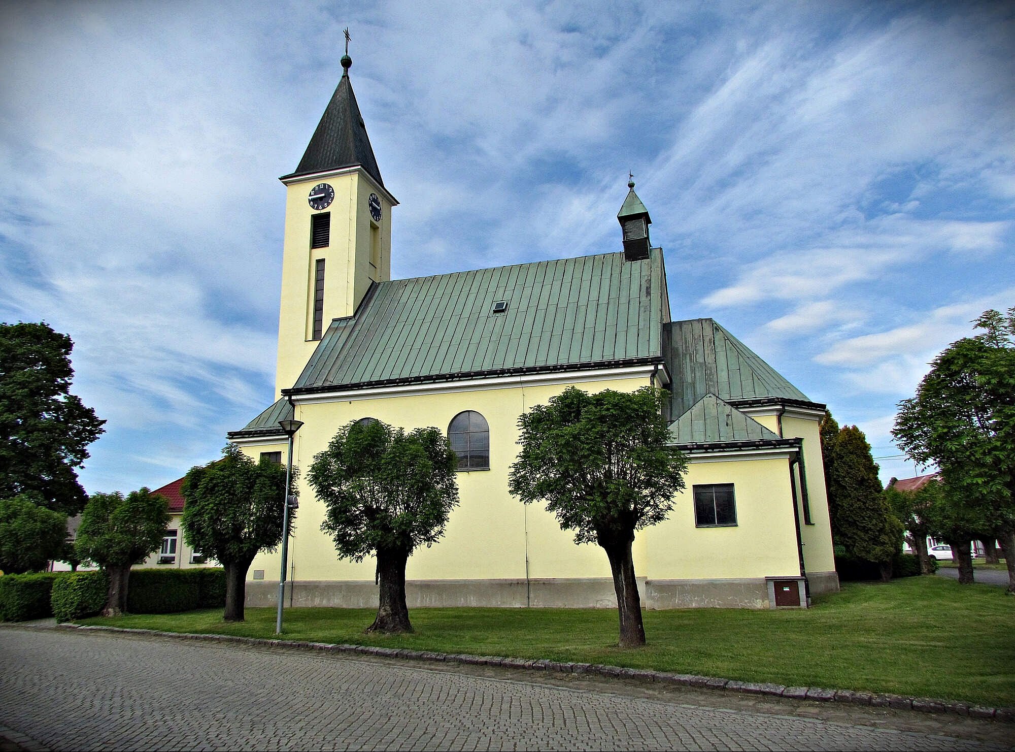 Chrám Navštívení Panny Marie je dominantou nejen návsi, ale i širého okolí obce. Mně jeho štíhlá a vysoko se nad rovinou vypínající hranolová věž posloužila jako maják, když jsem do Zahnašovic kráčel spletí polních cest od Třebětic. Kostel byl zbudován na výzvu olomouckého biskupa J.Stavěla roku 1938. O historii výstavby svatostánku se bohužel na stránkách obce nic nedozvíte a marné je i hledání u strýčka „Gůgla,“ což mi tedy připadá dosti divné. Znám totiž spoustu daleko menších obcí, které jsou na své pamětihodnosti patřičně hrdé a nezapomenou se o nich na netu podrobně zmínit...