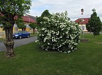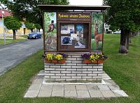 Na příjemné a parčíkovitě upravené návsi mne zaujala na trávě stojící májka a na jejím spodním konci vývěska „Mysliveckého sdružení Doubrava.“ O něco dál jsem minul starobylé stavení, v němž se dle „kamenných“ názvů o přízemní interiéry dělí obchod s potravinami a hostinec.