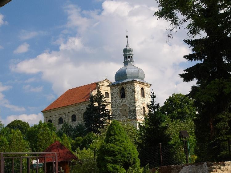 Obec nedaleko od Labe v výraným vrškam, na kterém stojí kostel.