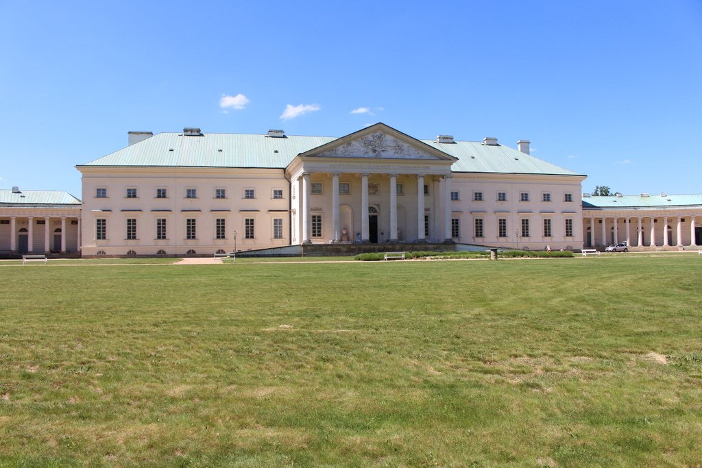 Zámek Kačina se nachází přibližně 6,5 kilometrů SV od Kutné Hory. Kolem zámeckého parku prochází silnice první třídy č. 2 a když je slunný a neobvykle teplý květnový den, je zámek vítaným zastavením. Parkoviště u zámku bylo poloprázdné a bylo předem dané, že tady nebude moc lidí. To se nám při vstupu do parku potvrdilo a naskytla se možnost pořídit hezké fotky. Bývá dobrým zvykem podívat se do minulosti. Stavba zámku tady probíhala trochu naopak. Prvním počinem bylo založení krajinářského parku, to se stalo v roce 1789, kdy u jeho zrodu byl vídeňský botanik N. J. Jacquin. Stavba zámku následovala mezi lety 1802 – 1822 a stavebníkem byl nejvyšší purkrabí Království českého, hrabě Jan Rudolf Chotek z Chotkova. Plány vypracoval drážďanský architekt F. Schuricht a na dalších úpravách se podíleli pražský stavební rada J. P. Jöndl a olomoucký stavební rada A. Arche. Stavbu vedl architekt J. Fischer. Chotkové zámek vlastnili až do roku 1911. Následovali Thun – Hohenštejnové, za nichž byl zámek zadlužen a za Protektorátu byl prodám organizaci Hitlerjugend. Po roce 1945 byl znárodněn a od roku 1950 je ve vlastnictví Národního zemědělského muzea.