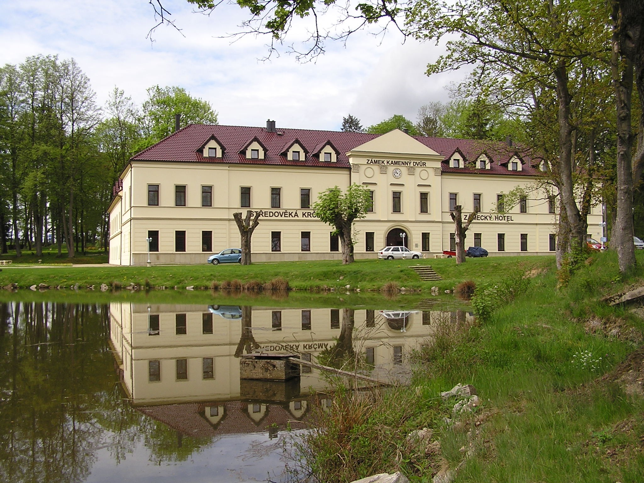 Zámek Kamenný dvůr leží asi 11 kilometrů západně od Sokolova v těsné blízkosti hlavní silnice Karlovy Vary – Cheb. Koncem 18. století město Kynšperk postavilo na místě zbořené tvrze pozdně barokní zámek, trojkřídlou jednopatrovou budovu s valbovou střechou. Nad vchodem s půlkruhovým vjezdem je trojúhelníkový štít. Dnes je objekt v soukromém vlastnictví a probíhá přestavba.