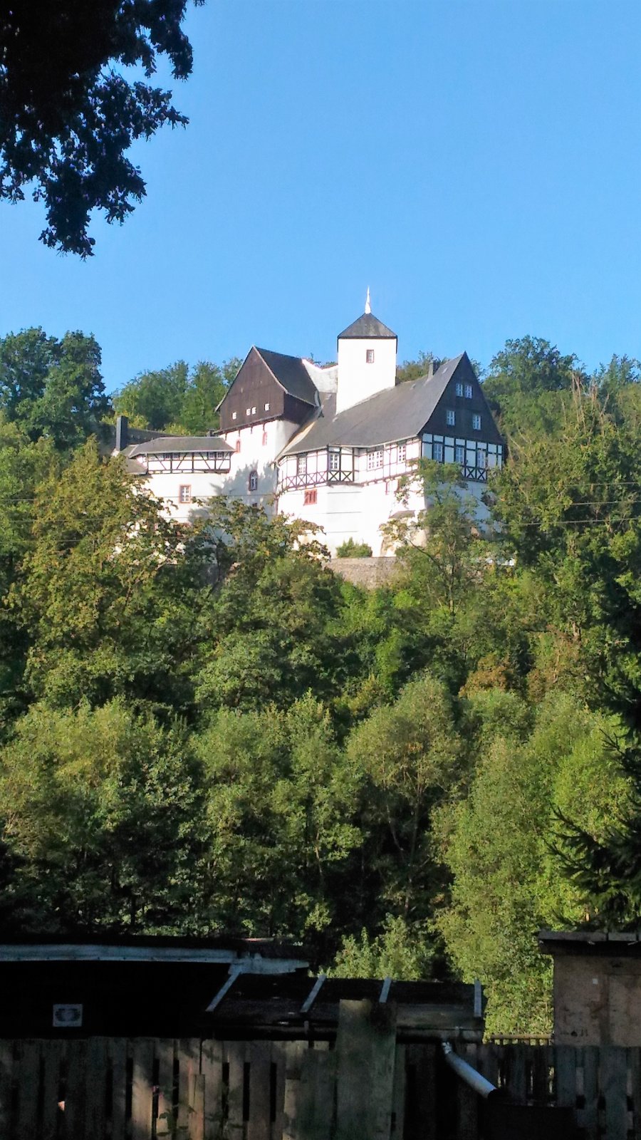 Zámek Rauenstein stojí vysoko nad údolím řeky Flöha v centrální části Krušných hor,