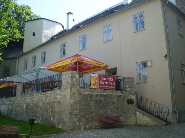 v této Staré škole bylo vybudováno občerstvení pro hosty zámku.Máte možnost posedět jak v interieru s klenbami tak na zámecké terase, která vám skýtá jedinečný pohled do kraje.