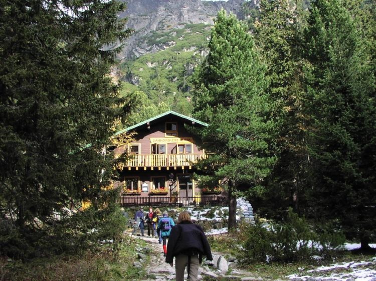 Horská chata a rozcestí turistických tras nedaleko Hrebienku na Tatranské magistrále.