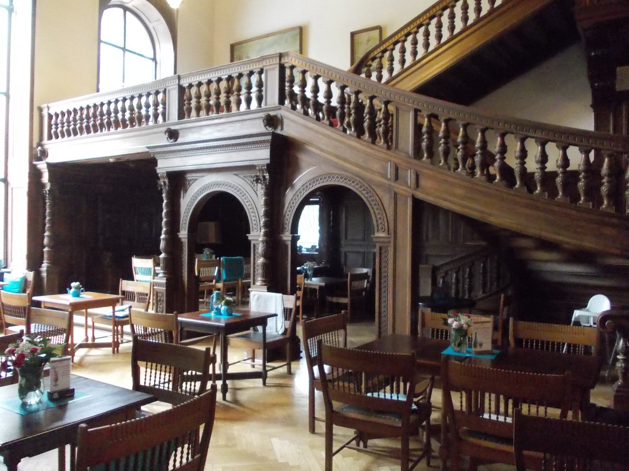 V minulosti slúžila ako čakáreň a aj reprezentačný salon, je jednou z najväčších miestnosti zámku. Z kaviarne vedie široké drevené schodisko s arkádovou galériou, všetko to zdobia balustrády, drevené stĺpy, obloženie, kazetový strop. V kaviarni s vysokými oknami je aj veľký dodnes funkčný krb z kameňa pieskovca.