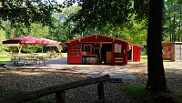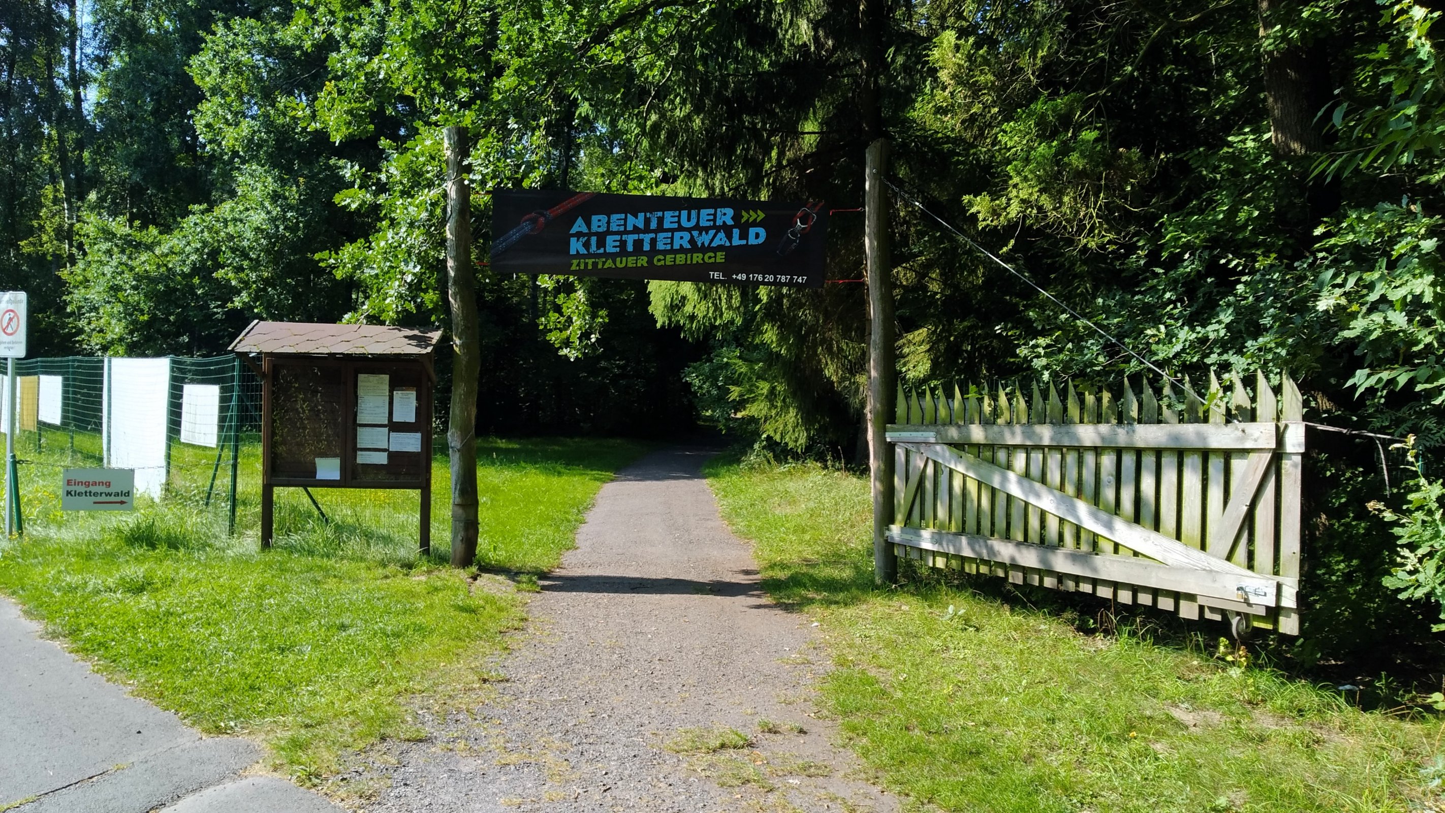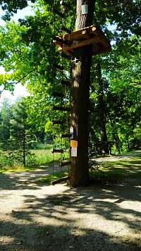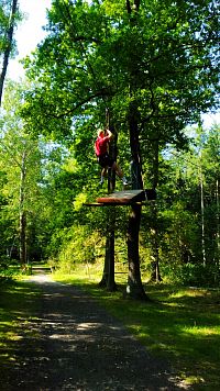 Lanový park je uprostřed lesa za přírodním koupalištěm Trixi na jižním okraji městečka Großschönau.