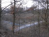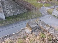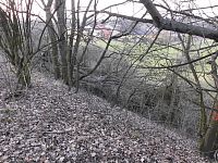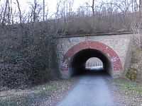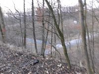 Na úseku bývalé trati ze Svinova do Vítkovic [7] to nejprve také vypadalo „strávitelně“, ale opak byl pravdou. Ostnatí vzrostlí ochranáři přírody i historie mi připravili cestičku trnitou. Pomyslně i doslova. Výška valu byla v některých místech značná a sklouznout dolů se mi určitě nechtělo. Pokud jsem tento násep schopen oběhnout po níže vedoucí pěšince a později i cestě k tunelu za pár minut, tak „hřebenovka“ byla očistcem. Vzpomínky na minulost bolí a ještě dnes, když píši článek, tak mám na rukou připomínky ještě viditelné. Ten a druhý den mi na kůži ještě naskočily pěkné „puchýře“ jako solidní alergická reakce. Je otázkou, zda to byla reakce na jedovatou „šťávu“ trnovníků – když jsem tam šel, tak bych keře trnovníkem nenazval, protože jsem tak impozantní trny jako nad hranou slavného a strašidelně kouzelného lomu Trhůvka, známějšího pod poetickým názvem „Pohádka“ [8] nedaleko hlučínské štěrkovny, neviděl. Překonání úseku mezi mostním pilířem na jeho západním konci k železničním kolejím vedoucím od Ferony do vítkovické průmyslové oblasti na východě mě trvalo určitě více než tři čtvrtě hodiny, spíš možná i celou hodinu. Někde jsem musel padlé stromy překračovat – to byla ta jednodušší varianta, ale mnohem častěji jsem musel trnitý porost podlézat. Skoro vždy mě něco chytlo za batoh nebo krk a nechtělo pustit. Později jsem už nesl batoh v rukou, ale ani to mi moc nepomohlo. V některých místech jsem dokonce musel sejít z cestičky, které byla patrně podobnými dobrodružnými šílenci označena žlutými „pentličkami“ na stromech jako jakési pomyslné tajné turistické značky. Podobně jako znamení těch, kteří se vydávají do zavřených dolů, štol nebo jeskyní a dalších míst, které nejsou úplně „košér“. Podobně jako překřížené větve u „vstupů do skal“ (v překladu jeskyní) znamenající „nevstupuj“ nebo alespoň „dávej si bacha“. U kopáčů minerálů (což je velice „nekošér“)to znamená: zde už je to „někoho“, kopej jinde. Ale nebudu se vydávat do problematiky něčeho, co se nemá. Podle některých řečí se měl tento úsek zkulturnit a vytvořit zde cyklostezka, ale pochopitelně z plánů sešlo a příroda si již prakticky všechno ovládla po svém. V jednom místě se mi dokonce podařilo tak pěkně neplánovaně sklouznout a už byla celá pravá a vlastně i levá ruka a kalhoty „čisté“ od něčeho podobně mazlavého a patrně ne příliš zdravého jako z odvodňovací štoly koksovny svaté Trojice [9].