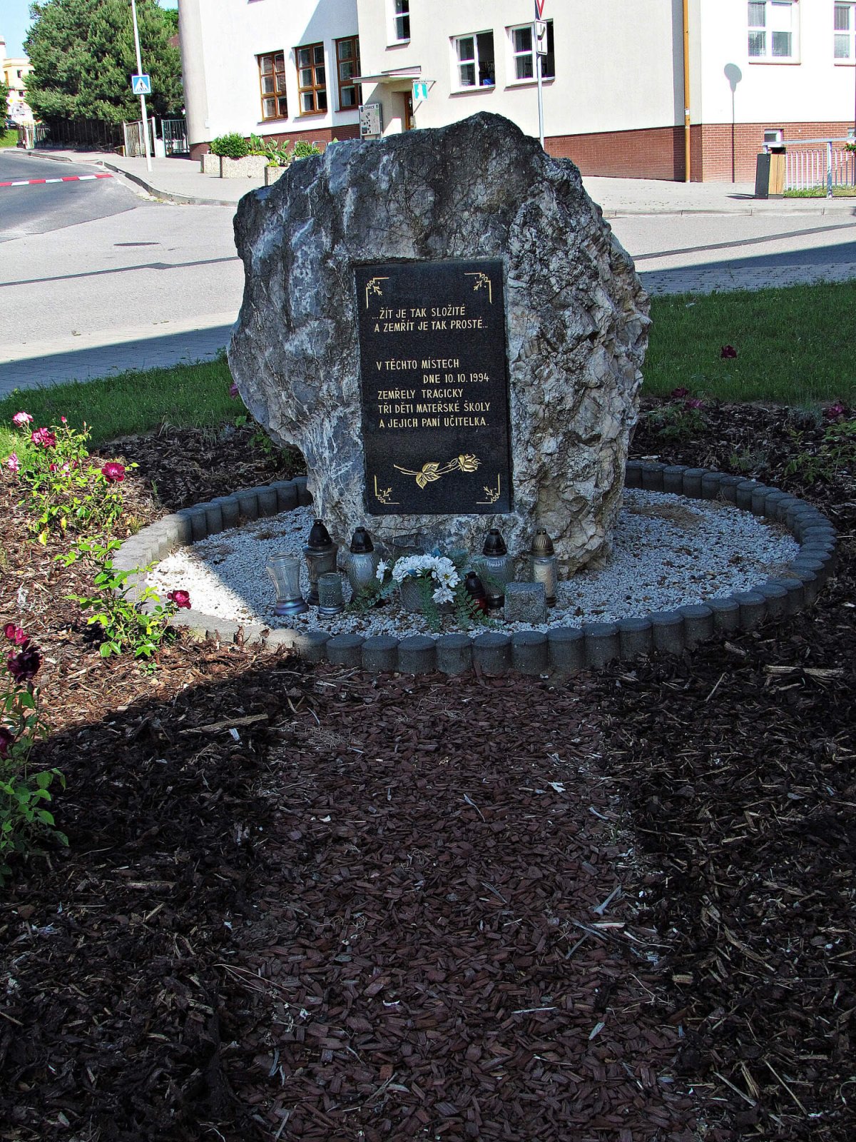 V těchto místech dne 10.10.1994 zemřely tragicky tři děti Mateřské školky a jejich paní učitelka.