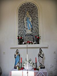 Nejvíce se mi z troubských památek líbila zvonice vypínající se na horním konci svažité návsi, která má podobu malé hranolové kostelní věže. V přízemí se nachází kaple zasvěcená Panně Marii a její oltář je po stranách na policích doplněn o řadu roztomilých figurek světců. Nad kapličkou se nachází zvonové patro a objekt je završen mohutnou bání s otevřenou lucernou a nahoře ukončen křížkem.