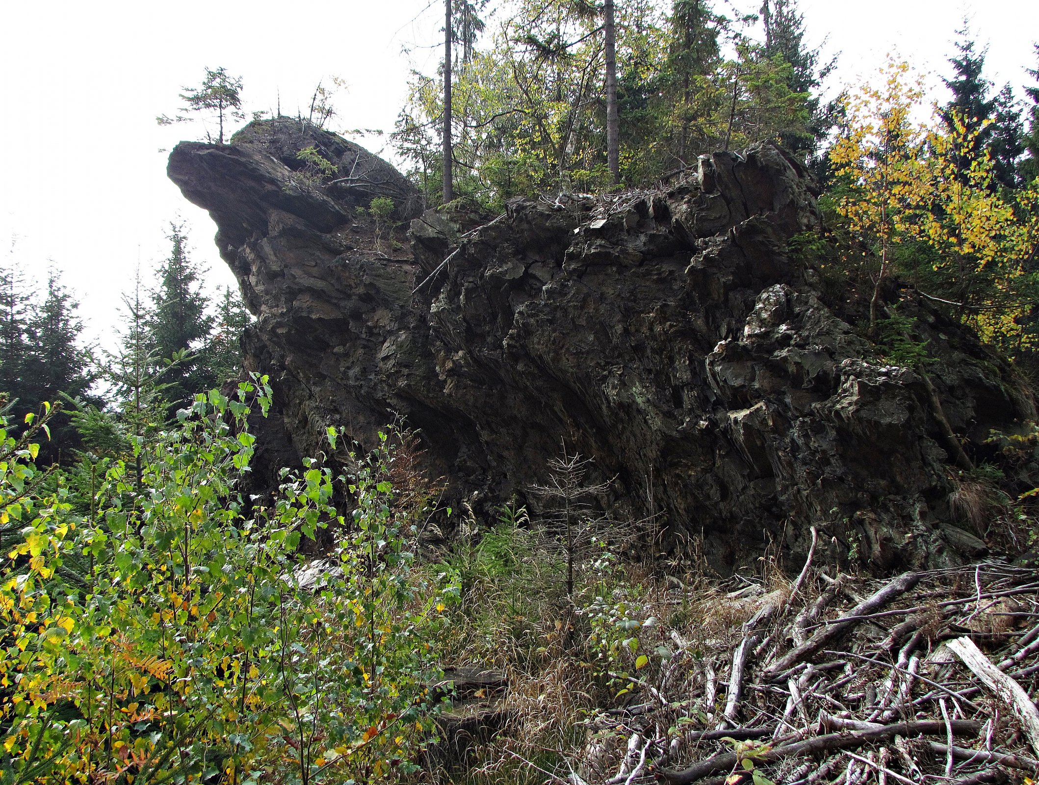 Vzpomínám si, jak jsem byl tehdy pohledem na dlouhatánský skalnatý pás, vystupující jak přízrak z odlesněného terénu, nadšen... a jen co se modrá trasa vyhoupla na lesní cestu, která skály přibližně uprostřed protíná, hnal se k nim jak splašený. Vylezl jsem na první větší blok pod cestou a dlouho se kochal pohledem na divočinu, která se v mém rodném kraji nevidí.