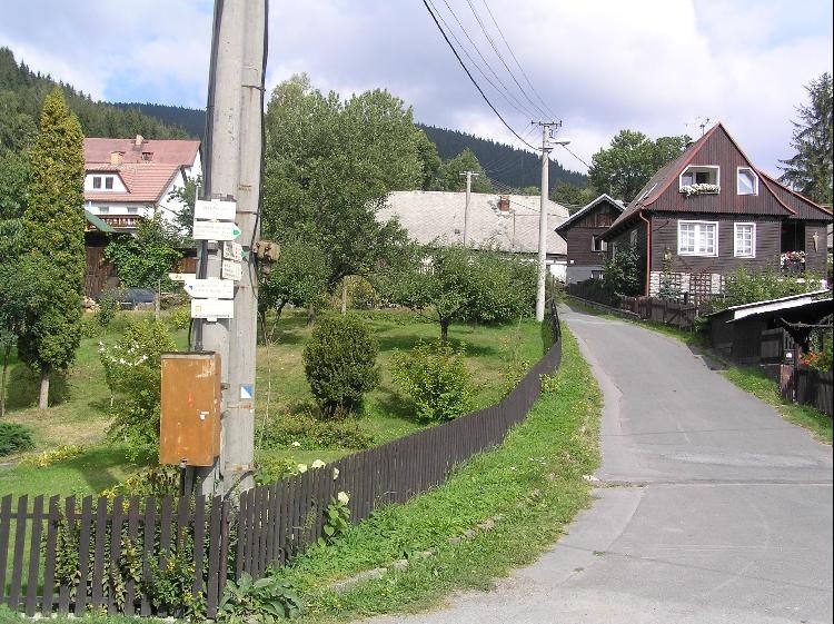 Rozcestník: Detailní pohled na rozcestník v obci