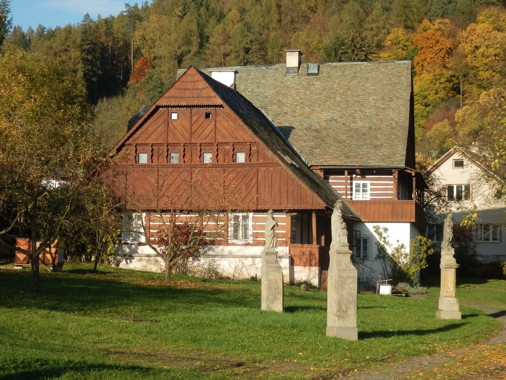 U Běliště, na konci Jirchářské ulice, si návštěvník národopisné expozice Městského muzea v Železném Brodě nemůže nevšimnout tří pískovcových soch.
